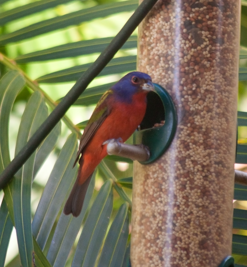 The Painted Bunting (Passerina ciris) is unarguably the most colorful bird I could hope to see in my neighborhood in South Florida. We’ve got all kinds of parrots and other beautiful birds, but this one takes the birdseed cake.