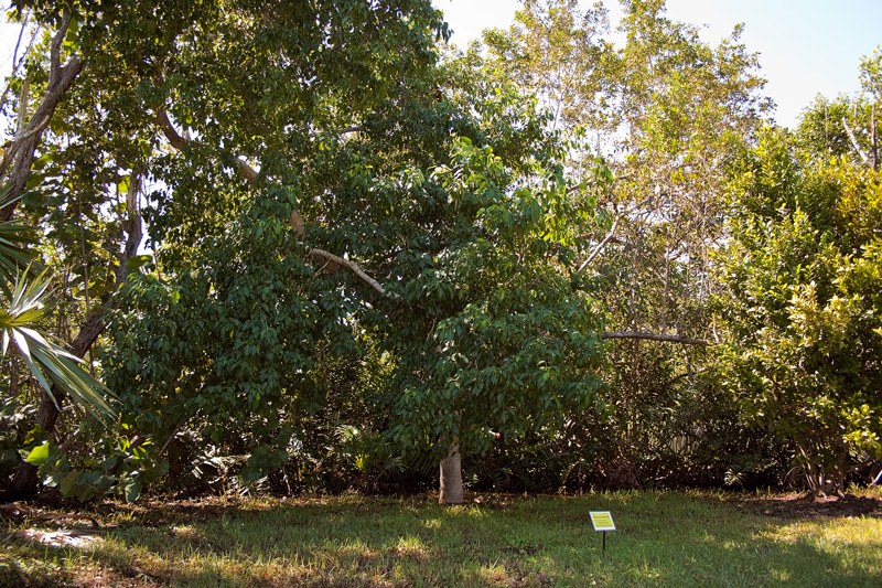 This time, I saw the sign. I know it wasn’t there on my first trip, and judging from its crisp condition, it hasn’t seen much South Florida rain and sun yet (could Fairchild personnel have read my blog, and set it all up for my benefit?). I was naturally really thrilled to be able to encounter a venenosa arbor to make Livia the Poisoner envious.