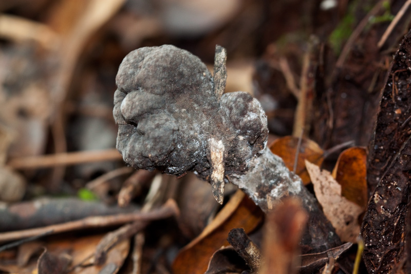 This is part of the grouping of Dead Man’s Fingers, but note the twig the fungus grew around. To me, this looks like a threatening fist holding a stick: “Get off my lawn, you damn kids!”