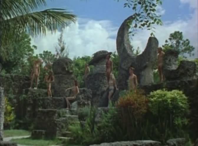 This gem is the 1961 Doris Wishman film Nude on the Moon. Two dopes create a rocket & fly to the moon, only to discover a breathable atmosphere and DAMES! Naked ones at that! Nude on the Moon was filmed at Coral Castle, an attraction here in Miami constructed of coral rock. I can tell you, there is no where you would rather be nude less than around blocks of coral rock. It is razor sharp.