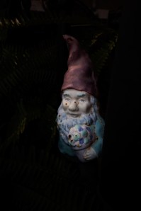 I initially thought they were a conglomeration of dog poop, since from above they are shaped and colored like that — thus my neologism “copromorphic,” i.e. “dung shaped.” But I got closer than I would to poop, and what’s REALLY weird is the pairing of a classic “mushroom-shaped” mushroom on the left with the odd fellow on the right! (There were a few of these pairings). I thought maybe it would mature, and perhaps grow into a more mushroomy form, but that didn’t happen. And there were no gills or spores; the powdery cocoa-colored powder on top separates easily, so I think this fungus must spread its spores like a puffball mushroom.
